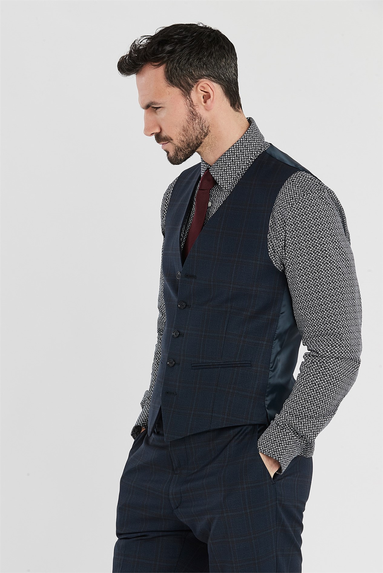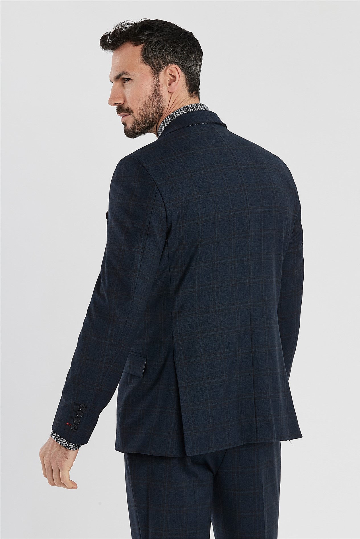 With a two button fastening, notch lapels and an eyecatching, tonal plaid fabric, this dark blue suit is rugged in quality and sharp in lineage, loaded with detail with the familiar Ted Baker attitude and mythos – signed off in style with the Ted Baker label pin and a statement, recycled polyester lining. This Ted Baker checked suit is exclusive to Suit Direct.